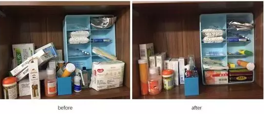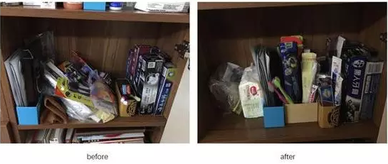 所以我們在放置的時候,要學會利用分隔來使用空間,并采取前后放置的方式來收拾同類物品。